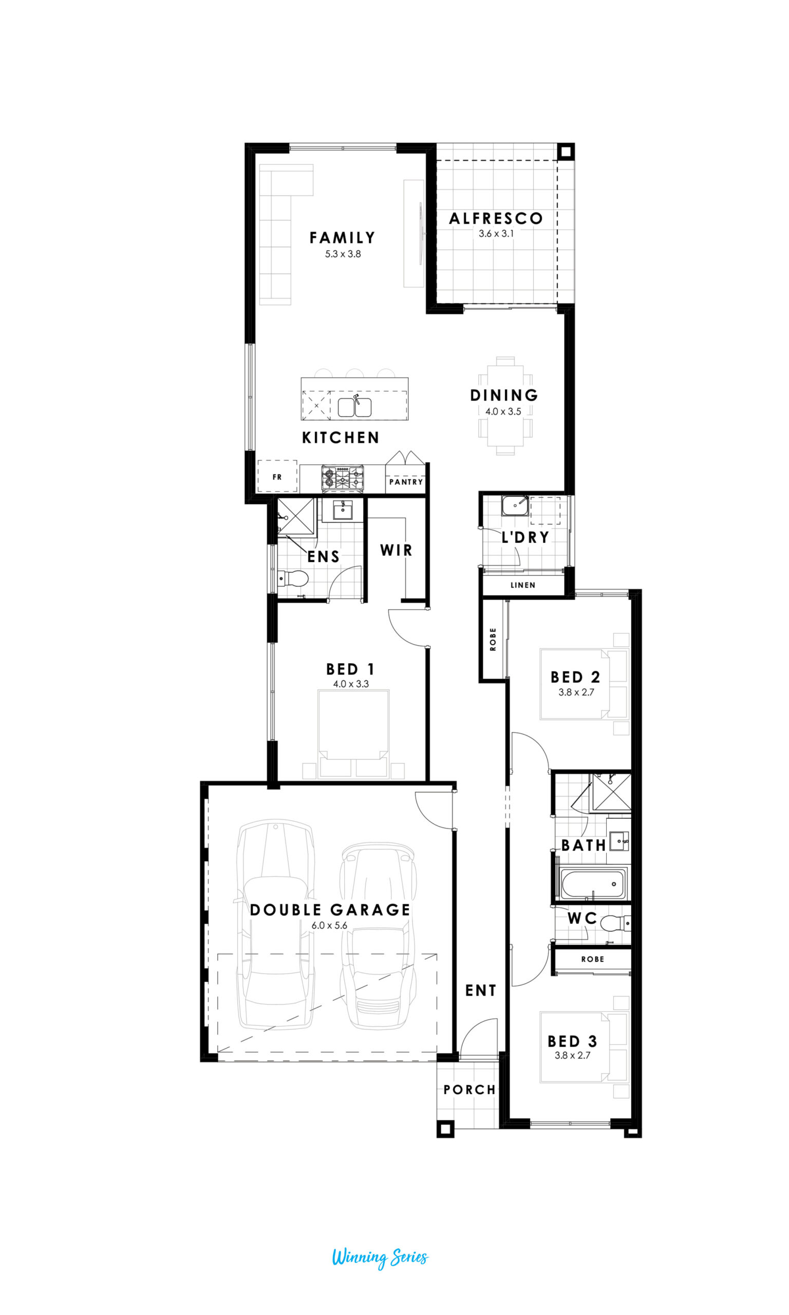 Ideal for low maintenance lots as narrow as just 12m wide, the Alkimos also boasts a gourmet kitchen with premium 900mm stainless steel cooking appliances, stone benchtops and a tone of extras as standard such as floor coverings, blinds and a LED package.