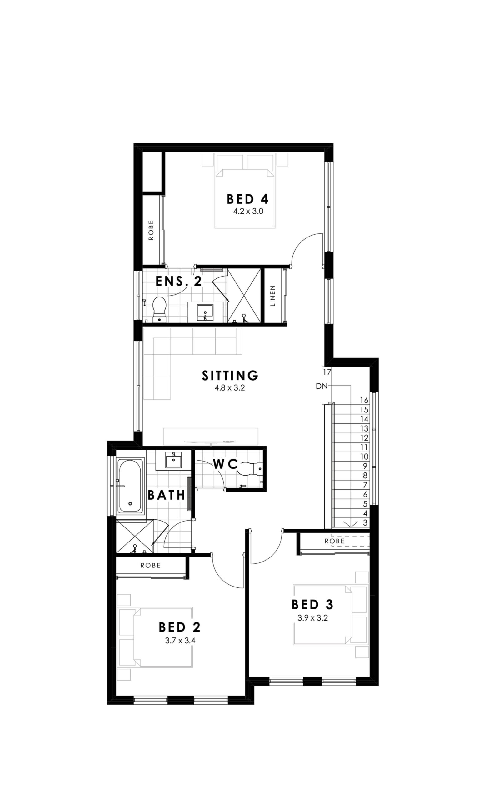 Balancing budget, space and our signature specification, the Lawler home design combines four double bedrooms, including a self-contained guest suite upstairs, with three large bathrooms, a powder room, a children’s activity room and options for open plan living and dining.