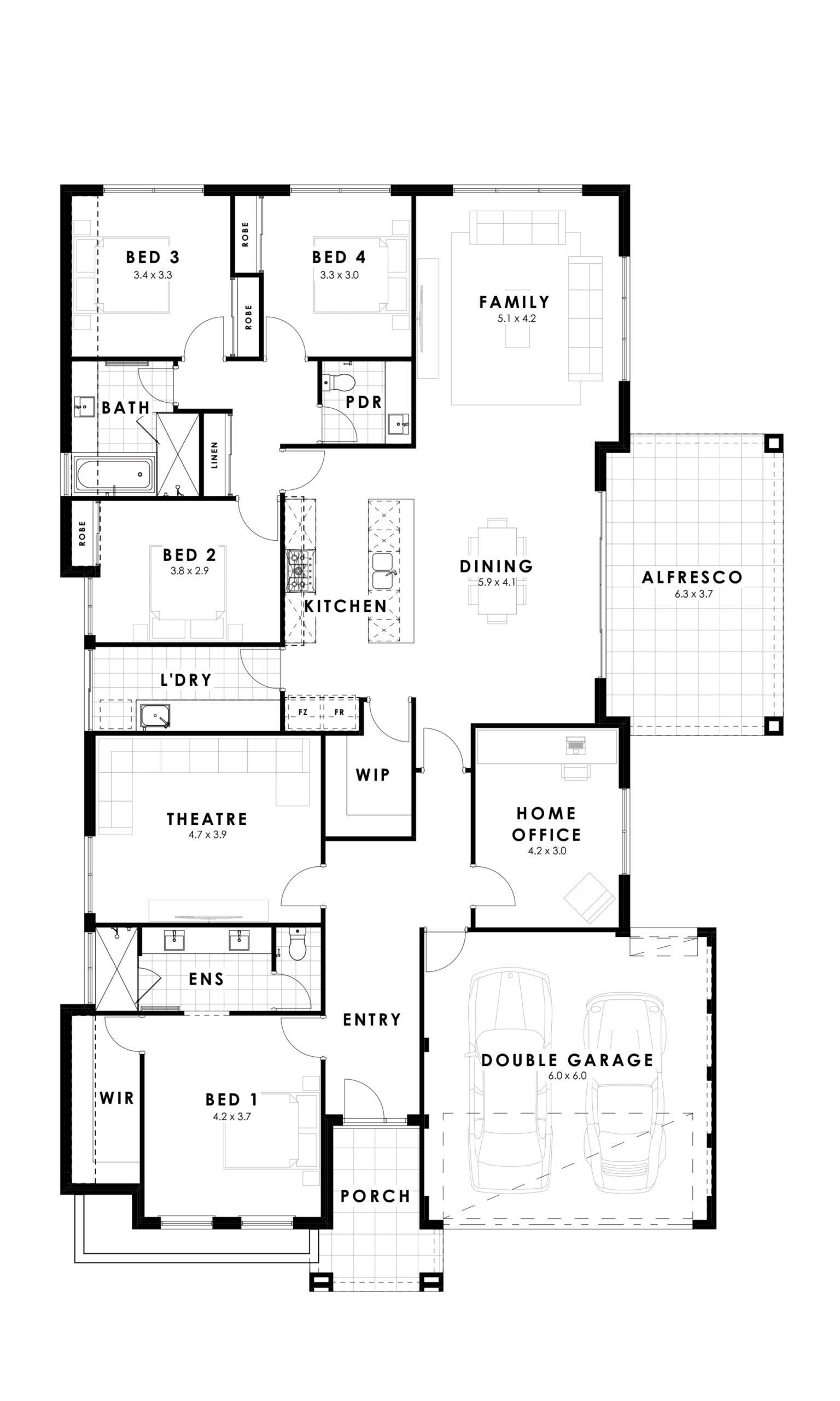 - A double lock-up garage and an airy all-weather alfresco area under the main roof